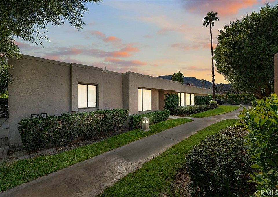 Welcome to Desert Living at Its Best! Nestled in the small gated community of Monterey Sands in beautiful Palm Desert, this beautifully maintained 3-bedroom, 2-bath single-story end unit condo offers the perfect blend of comfort, convenience, and resort-style living. A rare find on owned, not leased land, this home provides lasting value and peace of mind. Step inside to find an inviting open floor plan with vaulted ceilings, abundant natural light, and an atrium that fills the home with sunshine and charm. The spacious living room opens seamlessly to a private patio with views of the greenbelt and lush landscaping—ideal for morning coffee or evening gatherings under the stars. Enjoy a modern kitchen with granite countertops and stainless steel appliances, a two-car garage for added convenience, and easy access to community amenities. Located just minutes from El Paseo’s world-class shopping and dining, The Shops at Palm Desert, and top-rated golf courses, you’ll love being close to everything that makes Palm Desert living so special. Relax by the sparkling community pool and spa, surrounded by mature trees and mountain views. Whether you’re looking for a full-time residence, vacation home, or investment property, this one checks all the boxes.