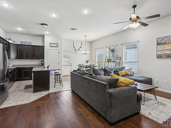 Are you searching for a beautifully upgraded home, situated in the highly sought-after Zachary school community? Your search ends here! This meticulously maintained home, built just over 7 years ago, boasts numerous modern upgrades. This residence includes a tankless hot water heater, radiant barrier roof decking, low E-3 windows, added canned lights, NO carpet, and architectural shingles. As you approach the front door, you are welcomed by a charming sitting area. Inside, a wide hallway leads to two guest rooms featuring easy-to-maintain laminate flooring and a spacious guest bathroom. The open living room showcases real wood floors and additional canned lights, providing ample space for a large sectional. The kitchen features a generous granite island with a breakfast bar, stainless steel appliances, and ceramic tile flooring. It seamlessly connects to a spacious dining room, ideal for entertaining. The master bedroom offers laminate flooring, large windows for natural light, and a spacious master bath with a dual vanity. The fully enclosed backyard, with a brand-new wooden fence, offers plenty of space for children and pets to play. Don’t miss out on this incredible opportunity—schedule your showing today!