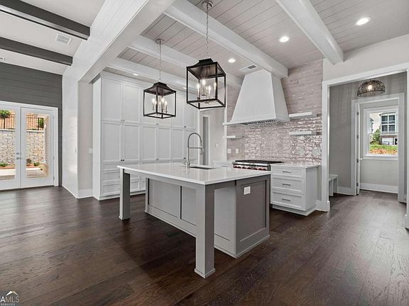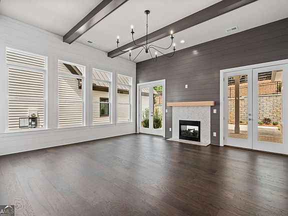 Special buyer opportunity! Ask about qualifying for a 5% APR with our preferred lender-a rare find in today's market! Welcome to Vickery, Forsyth County's beloved live-work-play community, where timeless architecture, walkable streets, and a true sense of neighborhood create an exceptional setting for any life. At the heart of the community is Vickery Village, just steps from home, offering favorite local restaurants, boutique shopping, and a picturesque village green where families gather for seasonal festivals, farmers and artisan markets, movie nights, and year-round community events. This thoughtfully designed residence blends elegant finishes with spaces meant to be lived in and enjoyed. The great room and dining area welcome you with 12-foot ceilings and tongue-and-groove detailing, creating a warm yet open atmosphere ideal for gatherings and entertaining. A striking see-through fireplace serves as the centerpiece, connecting the main living area to the expansive covered outdoor living space-perfect for hosting friends, celebrating milestones, or relaxing at the end of the day. French doors on either side of the fireplace open to the covered patio, featuring a 12-foot tongue-and-groove ceiling and cedar mantel, extending the living space outdoors for year-round enjoyment. The chef's kitchen is both beautiful and functional-designed as the true heart of the home. A Wolf 36-inch gas range is framed by custom floating shelves, while a ceiling-height tile backsplash and quartz countertops elevate the space. Abundant cabinetry and a walk-in pantry with wood shelving ensure everything has its place, making daily routines and family meals effortless. The primary suite on the main level offers a peaceful retreat, with direct access to the covered porch-an ideal spot for morning coffee or quiet evenings. The spa-inspired en suite bath features a statement tile wall, soaking tub, and an oversized tiled shower. A second main-level bedroom with a private en suite bath provides flexibility for guests, a nursery, or a dedicated home office. Upstairs, **three additional bedrooms-each with its own en suite bath-**offer comfort and privacy. One bedroom includes a cozy sitting area, perfect for reading, studying, or unwinding. An unfinished attic space allows for future growth and customization, whether envisioned as a media room, playroom, home gym, or extra storage. A charming covered front porch invites neighbors to stop and chat and reflects the welcoming spirit that defines life in Vickery. Residents are drawn to Vickery not only for its lifestyle, but also for access to some of Georgia's top-performing schools, making this an exceptional place to put down roots. Residents enjoy resort-style amenities including a beach-entry pool, tennis and pickleball courts, basketball court, playground, scenic ponds, and an abundance of green spaces-encouraging outdoor play, connection, and an active lifestyle. This is more than a home-it's a place where memories are made, and community truly matters.