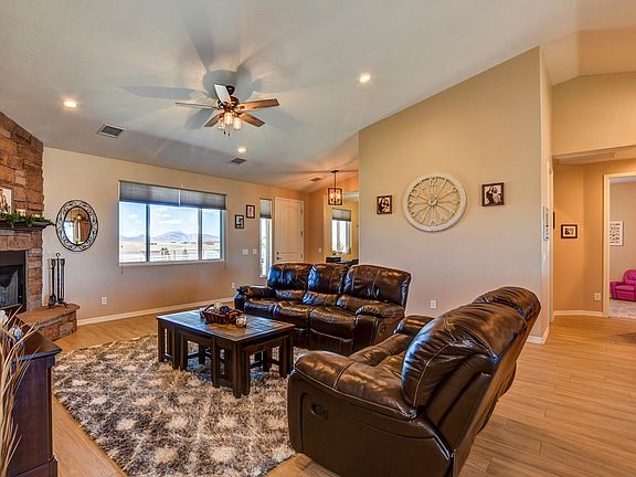 Views Views Views! Come see this fully landscaped move-in ready home boasting exceptional views! Newer home w/ open split floor plan great for relaxing. Great room w/ stone fireplace, vaulted ceilings, & bright windows to enjoy mountain views. Kitchen w/ island, breakfast bar, prep sink, pantry, stainless steel appliances, & Tipperary Quartz counters. Large master suite w/ dual sinks & walk-in shower. Additional bedrooms & bonus office/den are perfect to entertain guests. Located on a fully fenced 2.5 acres w/ 30+GPM producing well. Enjoy incredible 360 degree views from the front porch & back covered patio. Dual automatic gates, oversized 4 car garage w/ 220 & RV PAD w/ hookups. Bring your toys & pets! Set on an elevated corner lot in desirable Prescott Valley. This home is a rare find!
