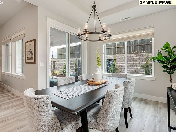 Private backyard with sky and treeline views from the yard. Hard to find one level new construction home in tranquil community Past the Creek in the new South Hillsboro. Enjoy this 3-bedroom home with den/office. Fine finishing touches include vaulted ceilings, cook's kitchen with gas appliances, quartz and spacious pantry. Your main bedroom has a gorgeous soaking tub, amazing closet and private door to enjoy your patio. Your living room opens up to the covered patio with room for a seating area, BBQ or even a gas firepit. Built for living comfortably for years to come and built with the quality you have come to expect from your local, award-winning builder. The community is one of the largest of its kind in the area, with nature trails, bike paths, parks, dog parks. With soon to come amenities including the upcoming Market Center and the new Market of Choice. Enjoy the Providence health care, Active fitness and more just blocks away. *Photos are sample photos from a similar home. [Home Energy Score = 10. HES Report at https://rpt.greenbuildingregistry.com/hes/OR10223090]