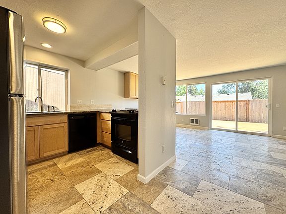 Lovely home located in a cul-de-sac in West Beaverton for rent! This cozy 3 bed, 2 bath home is filled with natural light and has brand new carpet throughout. The main level is wide open with great room floor plan, travertine tile, fireplace, and a dining area with built in buffet & cabinets. The kitchen has tile back splash, stainless steel sink & black appliances, and a new stainless steel refrigerator. Two bedrooms plus the primary share the continental bathroom upstairs. The petite back yard has beautiful new deck, plenty of wood storage for fireplace and paver path provides easy access to front yard. Washer/Dryer included.