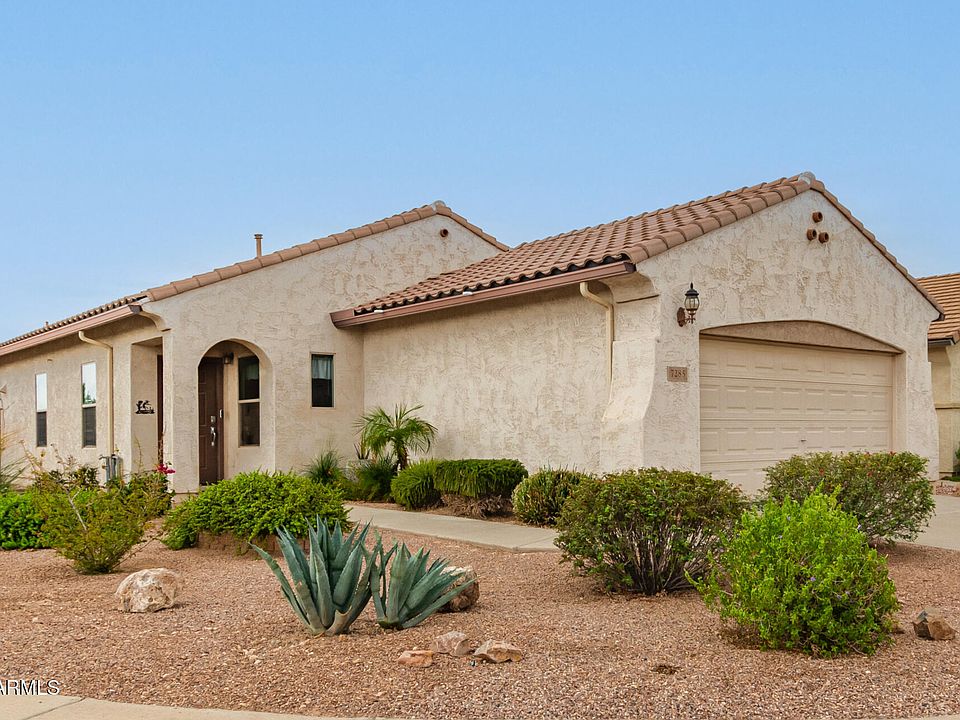 Live the Resort Lifestyle at Anthem Parkside at Merrill Ranch! Residents enjoy a state-of-the-art community center, rock climbing wall, full-court basketball, modern fitness center, community pool & water park! This charming corner lot home w/ modern upgrades is nestled next to a quiet cul-de-sac & features 2-bedrooms w/ a versatile den, offering an open floorplan filled w/ natural light. Enjoy easy-care landscaping, fresh interior paint & updated finishes throughout. The beautifully REMODELED KITCHEN features new cabinets, quartz counters, stylish backsplash, stainless steel appliances & pantry. Tile flooring & new carpet provide comfort & style, while ceiling fans keep the home cool & airy. Relax or entertain under the covered patio & take a refreshing dip in your private pool.