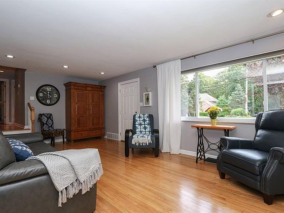 Beautiful inside & out. Almost an acre. Wooded lot. Gleaming hardwood floors. Updated kitchen. Newer gorgeous bath, tile, double vanity. Partially finished lower level. Entertaining will be a breeze on large deck w/privacy. Rear parking & extra storage for boat or camper. 1 car garage, 2 storage sheds. Roof '19, HVAC '18.