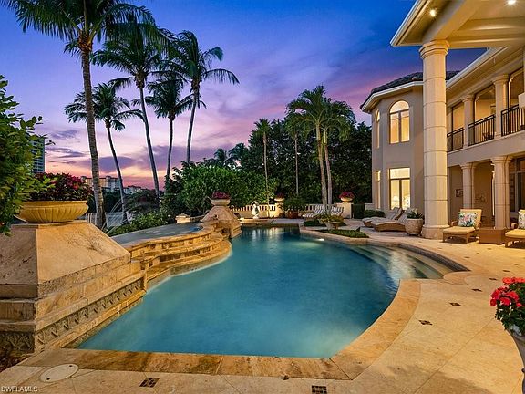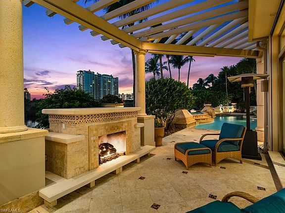 Spectacular, resort-style estate home in the exclusive community of Bay Colony Shores. This well laid out floor plan with western exposure offers breathtaking views of the sunset, ensuring you the ultimate Florida lifestyle. The expansive great room, anchored by the chef's kitchen flows effortlessly to the magnificent outdoor living area, highlighted by the outdoor kitchen and custom pool and spa. This residence features five bedrooms with private entries, a den/office, multiple fireplaces, outdoor water features, screened balcony, elevator, and 1,000+ bottle climate controlled wine cellar offering today's sophisticated buyer the ultimate in luxury living. Enjoy the first-class amenities Bay Colony offers exclusively to residents including the gorgeous, newly remodeled, Bay Colony Beach Club offering casual and formal dining, tennis club, concierge service program and optional golf membership at the award-winning Bay Colony Golf Club.