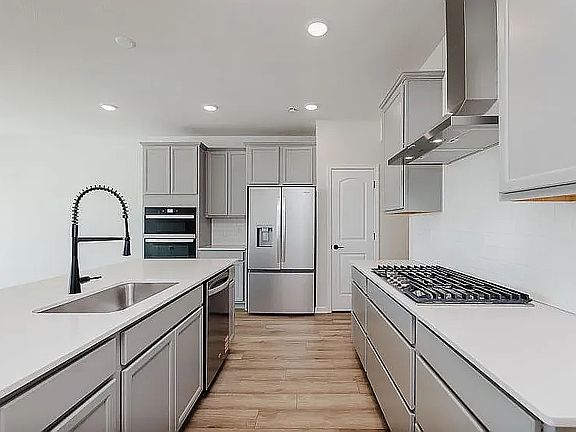 Open-Concept Kitchen: Enjoy stunning white quartz countertops, modern painted cabinets, and sleek built-in stainless steel appliances perfect for entertaining or cooking at home.