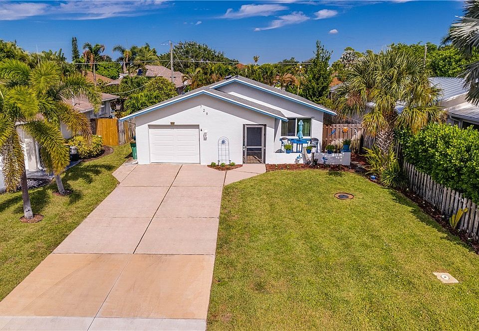 Welcome to this beautifully maintained 2-bedroom, 2-bath home in the highly desirable Naples Park community, located just minutes from Vanderbilt Beach, Mercato, and Wiggins Pass State Park. Offering just under 1,400 square feet of living space, this property combines coastal charm with modern upgrades and an unbeatable location. From the moment you arrive, you’ll notice the oversized double driveway, screened front entry, and fully fenced yard, providing privacy and curb appeal. Inside, the home is filled with natural light, volume ceilings, and a welcoming open layout that’s perfect for everyday living. The living area flows seamlessly into the kitchen and dining spaces, offering tile and laminate flooring throughout for easy maintenance. The primary suite features a large walk-in closet and a private bath with a shower/tub combination, while the guest bedroom and bathroom are smartly separated by a pocket door for extra privacy. The screened-in lanai overlooks the spacious backyard—complete with room for a pool—making it ideal for relaxing or entertaining.