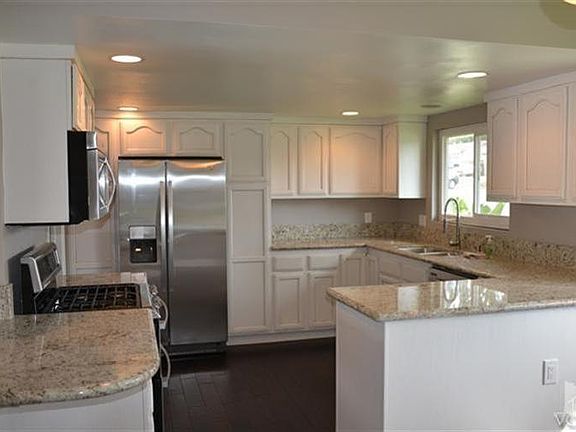 Simply Stunning! Totally updated 4 bedroom , 2 1/2 bath, 2,395 sf home with meticulous detail throughout. Beautiful and totally updated kitchen includes all new stainless appliances, all new antigue white cabinetry, new engineered hardwood floors, new natural stone fireplace, new recessed lighting, crown moulding, new dual glazed windows, all new HVAC, fully remodeled bathrooms with new stone and porcelain tile, new carpeting and mirrored wardrobes closets in each bedroom. Has a Pool, w/new equipment, Spa, Koi Pond and waterfalls.. Home has lovely views of the hills of Simi with excellent privacy. Offered at $619,900