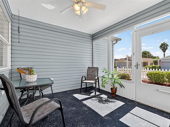 METICULOUSLY-MAINTAINED, TURNKEY 2/2 Colony Patio Villa featuring LOW-MAINTENANCE, stoned front, side, and rear yards. IDEALLY LOCATED just minutes to both Lake Sumter Landing and Spanish Springs in the Valdez Villas in the charming village of De La Vista! MOVE RIGHT IN! This AMAZING home INCLUDES EVERYTHING YOU NEED— Just bring your toothbrush! BOND PAID! A white picket fence and STONED landscaping beds with CURBED edging welcome you into the screened lanai boasting a painted floor. This wonderful room is the perfect spot for ENTERTAINING friends and family or simply RELAXING with your morning coffee, evening cocktail, or a good book! Step through the front door into the OPEN CONCEPT floor plan of the living, dining, and kitchen. This SPACIOUS main living area features GORGEOUS LUXURY VINYL PLANK FLOORING. Sliding glass doors off of the dining room open to an OUTSIDE PATIO AREA - ideal for ENJOYING the beautiful Florida weather! Back inside, the AMAZING kitchen boasts a TILE floor, WHITE cabinetry, PANTRY closet, breakfast bar, and EAT-IN DINETTE area. The primary bedroom features LVP flooring and a GENEROUS WALK-IN closet. It’s en-suite bathroom is well-appointed with WHITE cabinetry, WALK-IN shower, and a LINEN closet. Bedroom two features LVP flooring and a built-in closet. The second bathroom offers WHITE cabinetry, tub and shower combination, and a hallway LINEN closet. Completing the package is an 18’ x 22’ one and half car garage featuring PAINTED floors, LAUNDRY AREA with WHITE cabinetry, UTIITY SINK, ceiling fan, shelving, attic access with stairs, and plenty of space for a car and a golf car! DON’T MISS YOUR OPPORTUNITY to make this AMAZING TURNKEY home your own! The Village of De La Vista is just minutes to both Lake Sumter Landing and Spanish Springs; close to Tierra Del Sol, Hacienda Championship Golf Club, and Glenview Country Clubs and Championship Golf Course; Multiple other Executive Golf Courses within a short golf cart ride, La Hacienda Regional Recreation Center, recreation centers, pools, pickle ball, shopping, restaurants, and the Villages Regional Hospital. PLEASE WATCH OUR WALKTHROUGH VIDEO of this WONDERFUL, TURNKEY VILLA in a FANTASTIC LOCATION and call today to schedule your Private Showing or Virtual Tour!