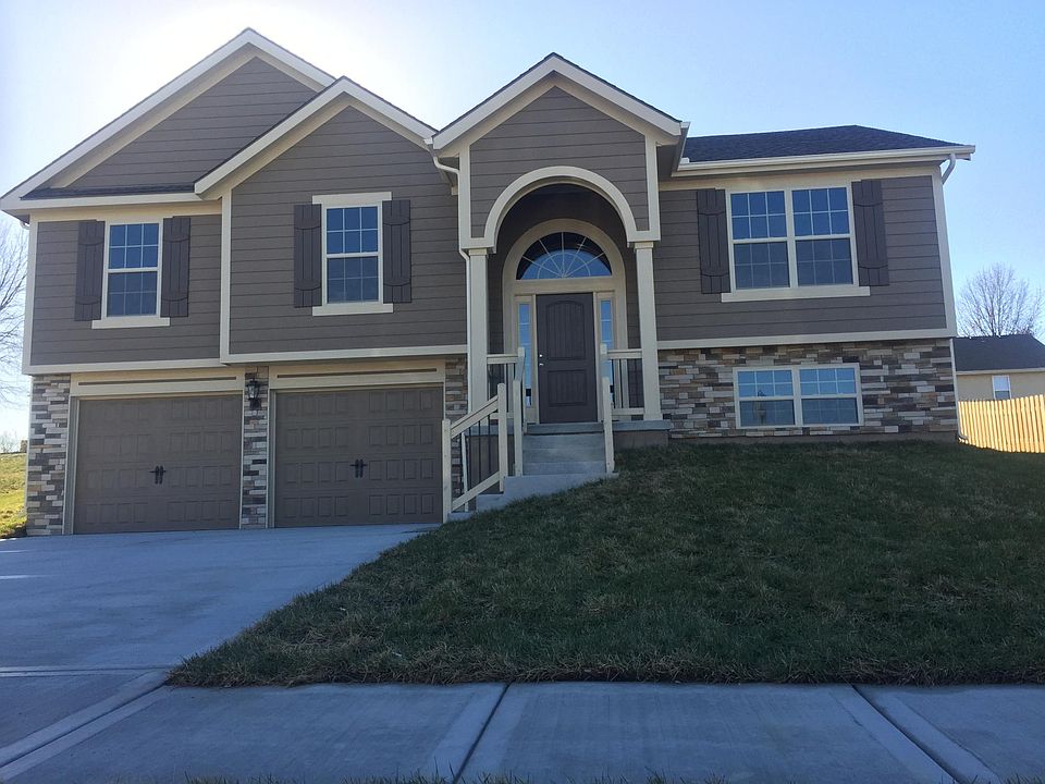 Conveniently located in a quiet neighborhood in Kearney, MO. Split entry, open concept home with finished basement. Main floor has 3 bedrooms and 2 full bathrooms. Large living room with vaulted ceilings and a custom gas fireplace. Beautiful hard wood floors in the kitchen and dining room. Granite in the kitchen with custom tile back splash and a large island. Additional appliances included are a microwave and a refrigerator. Large, covered deck with ceiling fan located off dining room and kitchen.