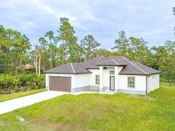 Gorgeous and spacious 4-bedroom, 2-bathroom home offers 1,842 sq. ft. of modern living space, perfect for families or professionals seeking comfort and convenience. Open-concept living and dining areas with plenty of natural light Stylish kitchen with modern stainless steel appliances, quartz countertops, and a dishwasher. Spacious primary suite includes en-suite bathroom with double sinks, and 2 walk-in closets. Three additional bedrooms ideal for guests, a home office, or a playroom. Indoor laundry room with washer and dryer and utility sink! Central air conditioning and energy-efficient hurricane impact windows -solid, comfortable and safe! Attached 2-car garage with extra storage space. Located in a quiet area but convenient to Lehigh Acres, Naples, Fort Myers, Immokalee, Estero/Bonita and Alva. Quick and easy move-in! No HOA! Pet-friendly!