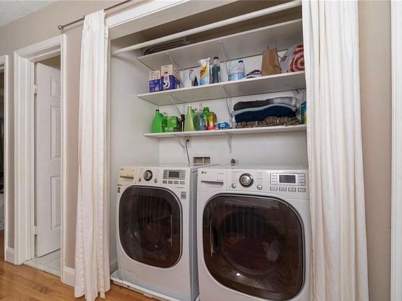 -Completely move-in ready. Filled with solid white oak hardwood floors, beautiful granite counters and stainless steel appliances, brand new blinds throughout. All appliances convey including a Front loader washer and dryer.