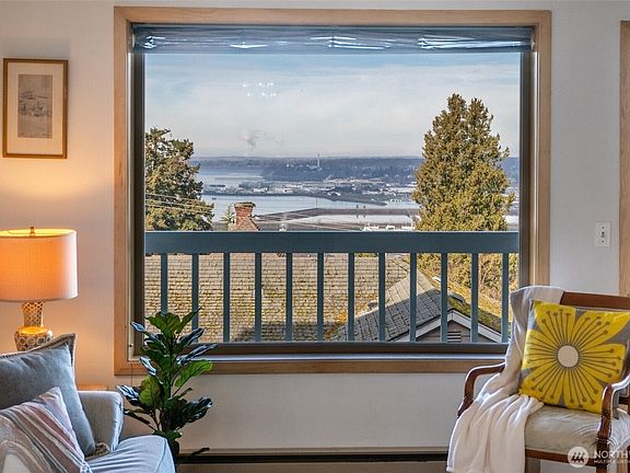Nestled in a central location, this charming two-bedroom condo offers sweeping views of the bay, mountains, and skyline. This spacious end unit with open layout enhances the sense of roominess while inviting natural light to flood the space, creating a bright and welcoming atmosphere. A large, private deck provides the perfect vantage point for watching stunning sunsets over the water and mountains. Just a short 2 blocks from WWU with restaurants and shops nearby! Combining convenience with scenic beauty, this unit comes with one covered parking spot, a pet-friendly policy & NO rental cap. Great investment property or primary residence. VACANT GO SHOW! HOA dues are more affordable than most due to boutique size of complex.