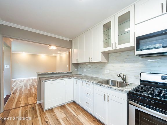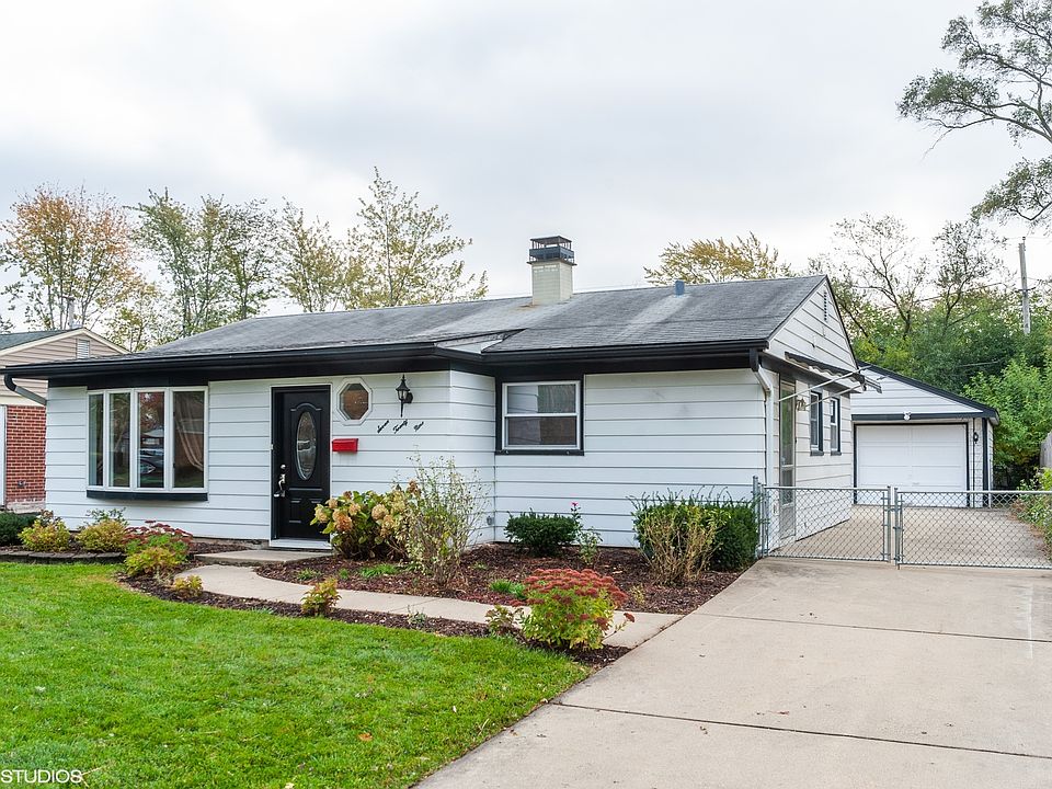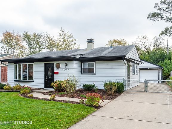 Charming ranch on tree-lined street & huge back yard! Living & Dining Rooms open into the spacious Kitchen making entertaining easy! Three generously sized bedrooms share a neutral hall bath. Spacious detached 1 car garage and screened porch complete this recent rehab completed in 2019. New floors, cabinets, appliances, custom bath, and more. Just minutes away from parks, schools, shops, Metra, and the Wheeling town center!