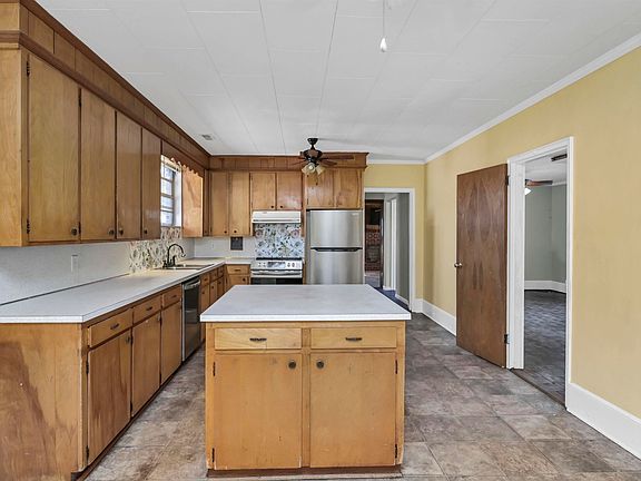 Coy pondModern appliancesBuilt-in shelvesAll-brick ranch-style homeLarge lotIsland with storage spaceExpansive kitchen