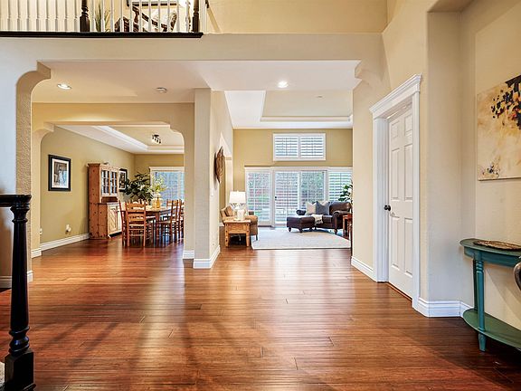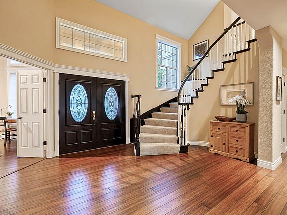 Experience luxurious living at 729 Montevino Dr., Pleasanton, CA 94566. This custom 5-bed, 3-bath East-facing executive home features a dramatic double-door foyer with a curved staircase, formal living room with a 14-foot tray ceiling and travertine fireplace. The gourmet kitchen boasts quartz surfaces, top-of-the-line stainless appliances (including a 6-burner downdraft cooktop), and a large breakfast nook opening to a sun room. The family room features a brick fireplace and quartz wet bar. Downstairs offers a spacious octagonal office/1-bed suite with a full bath and a laundry room with custom cabinetry. The primary suite is a true retreat with a vaulted ceiling, fireplace, and ensuite bath featuring dual vanities, a jetted tub, separate shower, and valley views. The home includes a brand-new dual-zone heat pump HVAC, central vacuum, hardwired gigabit network, new exterior paint, and a 50-year concrete tile roof. The private, drought-tolerant landscape offers three patio areas and valley views. Enjoy easy, walkable access to highest-rated Blue Ribbon schools, downtown Pleasanton, parks, and recreational areas. Convenient access to ACE/BART and the I-580/I-680 interchange. This amenity-rich luxury lifestyle awaits!