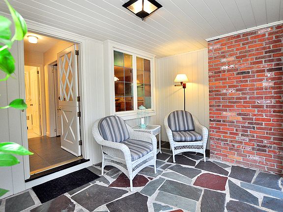 Raised hearth fireplaceScreened in front porchCrown moldingRecessed lightingLeaded glass windowsChair railsQuartz countertop