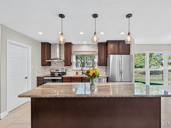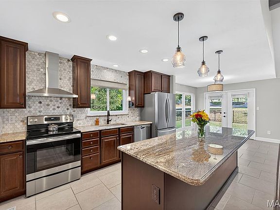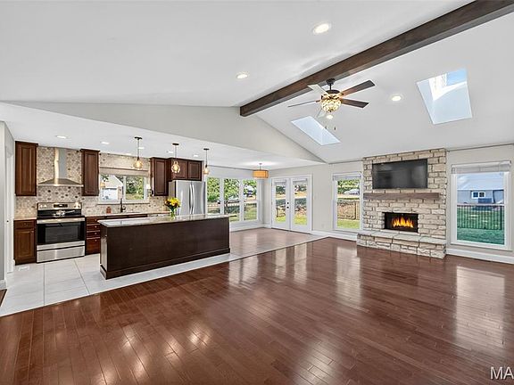 Beautifully updated and meticulously maintained 3 bedroom, 3 full bathroom ranch home w/ over 3,100 sq. ft. of living space in the Rockwood school district. You will love the updates on this home, from the professionally finished basement to the manicured landscaping, this property is sure to impress! The kitchen features a marble backsplash, granite counter tops, stainless steel vented hood, 8 ft. center island and thoughtfully planned coffee bar w/ pot filler. The great room is accented by a beautiful stone, gas fireplace, hardwood flooring, vaulted ceilings w/ custom beam and 2 skylights that provide ample natural light. The main floor laundry room features new, stackable washer and dryer units & new custom shelving and cabinets provide a great drop zone coming in from the garage. The spacious primary bedroom has vaulted ceilings, large walk-in closet and updated ensuite bathroom w/ skylight and dual sinks. The professionally finished lower level features a new wet bar/kitchenette, large rec area, exercise room, full bathroom, additional sleeping area and large storage room. Outside you will find a newly poured 3 car wide driveway, new back patio to enjoy morning coffee & evening BBQ, aluminum fencing, irrigation system, fresh landscaping and architectural shingle roof. Additional features include new premium windows throughout home, new HVAC system, new tankless water heater, oversized 2 car garage w/ service door and upgraded electrical panel. All situated on a 0.32 acre corner lot in highly desirable neighborhood w/ Ellisville city amenities, Rockwood schools and easy access to shopping, parks and restaurants!