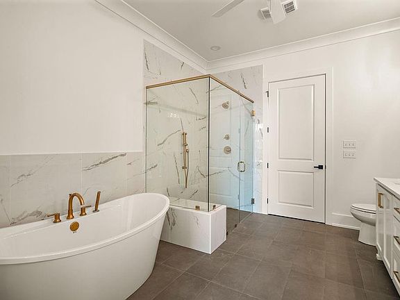 Welcome Home!! Sought After Gated Maison Du Lac! This stunning residence offers unparalleled comfort and luxury, complete with a home warranty and termite contract for your peace of mind. Enjoy the benefits of a tankless water heater and a beautiful brick courtyard, perfect for outdoor gatherings. Located in a serene neighborhood, this home requires no flood insurance and boasts access to a community stocked lake and picturesque parks with inviting seating areas and relaxing swings. Step inside to discover a remote-controlled fireplace that adds warmth and ambiance to the living space. The kitchen is a chef's delight, featuring under-cabinet lighting, a top-of-the-line appliance package, a spacious island, and an abundance of cabinetry with soft-close drawers. A large pantry ensures ample storage for all your culinary needs. The primary suite is a true retreat, showcasing a separate freestanding soaking tub and an oversized walk-in custom dual-zone shower. Designer light fixtures throughout the home add a touch of elegance to every room. Custom shelving throughout provides both functionality and style. Don't miss your chance to own this exquisite property that offers the perfect blend of luxury and convenience!