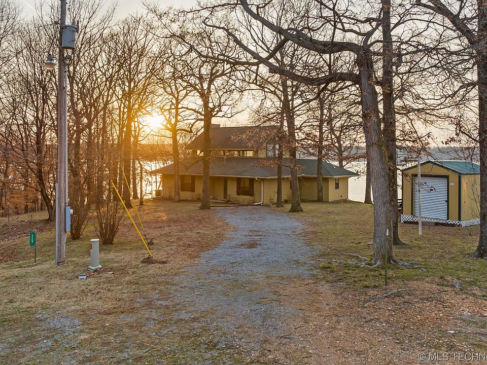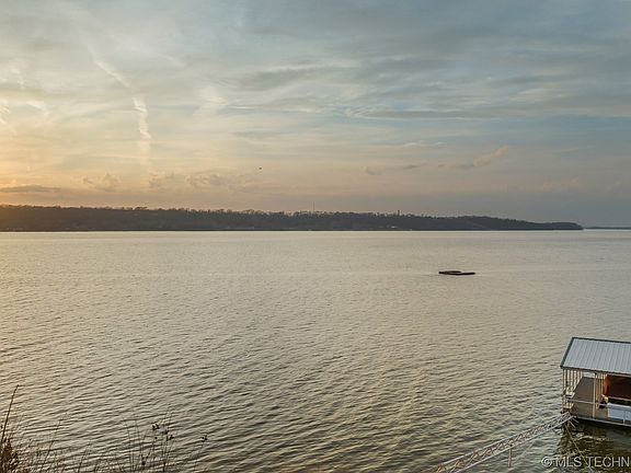 With the beautiful spring weather, this listing is just in time to enjoy your weekender oasis on Lake Hudson just an hour from Tulsa! Built in 2005, this lake cabin has approximately 200 m/l lake frontage, incredible views and sunsets, boat dock w/lift and rustic ramp next to the property to launch your boat. Home sits on .80 acre lot, plenty of room to build a shop but comes with a great storage shed. This lake house has a cabin feel but with the soaring ceiling heights, makes it feel cozy yet spacious w/2 bedrooms, 2 baths, amazing fireplace for your colder stays and a loft. House can currently sleep 8-10 people. Primary en suite bedroom is large enough for king size bed+ furniture and has large double sink main bath and walk-in closet. This fully furnished home & equipped kitchen comes ready to move in and ready to use!! If you're looking for the perfect lake home, this a must see.