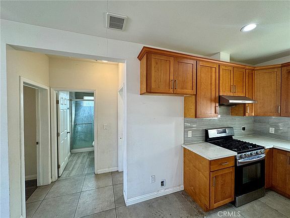 Rested on a 6,236 sq. ft. duplex lot shared with a front house in a residential neighborhood in Pomona this back house includes Three Bedrooms, Two Bathrooms with ample space on the gated driveway for your vehicles. Upon entry, a spacious living room with tile flooring awaits, perfect for friends and family gatherings. The kitchen features marble countertops and plenty of storage space. Includes a bonus room with washer and dryer hookups to install your washer and dryer.