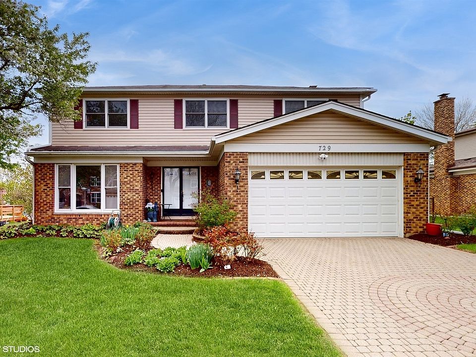 Welcome to this beautiful 5-bedroom, 2.5-bathroom home, perfectly situated in the highly desirable Pleasant Hill neighborhood-part of the top-rated Fremd High School district and served by Plum Grove Middle School and Pleasant Hill Elementary. From the moment you arrive, the elegant brick paver driveway sets the tone, offering excellent curb appeal and a warm first impression. Inside, the main level features inviting living spaces, including a sunlit living room, a cozy family room with a fireplace, and a formal dining room ideal for hosting gatherings. The heart of the home is the refreshed kitchen (2024), featuring a brand-new stove, complemented by new flooring and fresh paint throughout the home (2024), creating a truly move-in-ready experience. Upstairs, you'll find all five bedrooms, including a spacious primary suite complete with a private bath and generous walk-in closets-offering both comfort and functionality for everyday living. The finished basement expands your options with flexible space for a recreation room, home gym, play area, or additional entertainment space-plus ample storage. Step outside to a fully fenced backyard, offering the perfect outdoor retreat with a beautiful brick paver patio-ideal for entertaining, relaxing, or enjoying peaceful evenings under the stars. This home is equipped with low-maintenance LeafGuard gutters. Located in a quiet neighborhood known for its welcoming community and outstanding schools, this home offers a blend of timeless charm and modern updates. With just a touch of your personal style, you can make this already exceptional home truly your own. Don't miss your chance to own this special property-schedule your showing today!