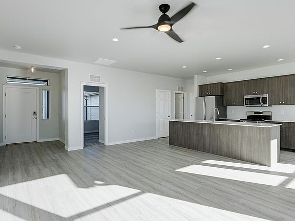 RATE SPECIAL PRICE IMPROVEMENT! Better than new, and we improved it just for you- "Move-in-Ready" spacious, stylish, and designed for modern living. This home includes full perimeter fencing, (2) gates, front and rear landscaping, window blinds, washer dryer and refrigerator. The property is situated on a corner lot in the beautiful Ardell Estates, Kuna. This location is so convenient to schools, the small downtown vibe, growing retail, and restaurants while situated for use of TenMile or Meridian roads accessible with lights at Columbia or Hubbard then you go North toward the interstate. We have all the comforts you might want plus the entertaining needs are also resolved with an open living room layout and vaulted ceilings. Embrace the comforts of a brand new home in a desirable area with fencing, common areas, and paths all a huge plus. The flexible layout with the kitchen, living room, and primary suite are all at the rear of the home. This home has upgraded finishes, with soft close cabinets, stainless steel appliances, and stylish solid surface countertops. Triple Car garage with fresh new paint, openers and remotes- WE PAY CITY UTILITIES!