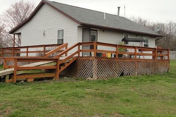2 bedroom, 1 bath home with a wraparound porch on three sides, the front is covered and the side and back are open. Home sits on 4.78 acres and has a large pond outback along with a storage building and a 3 car detached garage. Property is located only 11 miles from Bloomington and approximately 20 min