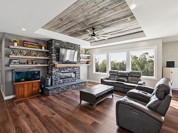 Custom-built wet barFinished basementGreat viewsFire pitLarge covered deckLarge kitchen areaFood plots