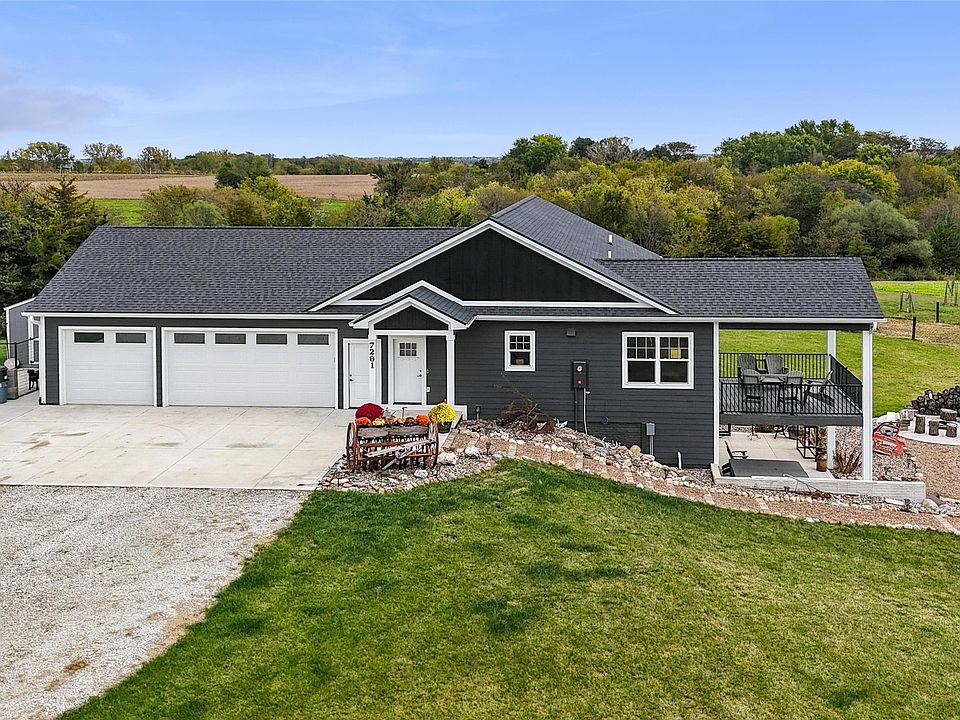 16.80 Acres with timber, pasture, food plots. Enjoy the privacy with family and friends on this beautiful setting. Just south of Norwalk, Iowa. Walkout ranch built in 2022, 3597 SQ FT of finished living area, 5 Bedrooms, 3 baths, large kitchen area, 3 car attached garage, finished basement complete with a custom-built wet bar, large covered deck and patio, also an open patio area, fire pit to sit by outside and enjoy with great views. Great property to enjoy all of your outdoor recreational activities in privacy. This is a hard-to-find property in this price range with all the privacy and a beautiful house in a natural setting with lots of wildlife, deer, turkey and pheasants in your backyard.