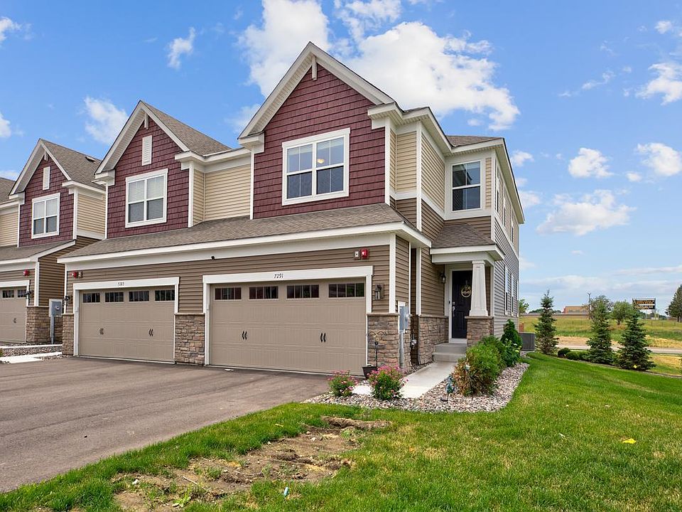 Spacious 4 bed and 4 bath END UNIT 2021 built townhome is available for rent from Oct last week onwards. Total finished area is 2460 soft. Beautiful kitchen with quartz counters and decorative backsplash, stainless steel appliances and huge center island, engineered hardwood plank flooring and much more! Master bedroom has a spacious walk-in closet. Finished lower-level full basement with 2 car garage. Tons of natural light thru out home. Easy to get to countless restaurants, entertainment venues, renown medical facilities and maple groves public parks. Park access, walking trails, 5 mins to Walmart, Target, Home Depot and many retail shops and restaurants. Walkable distance to HyVee.