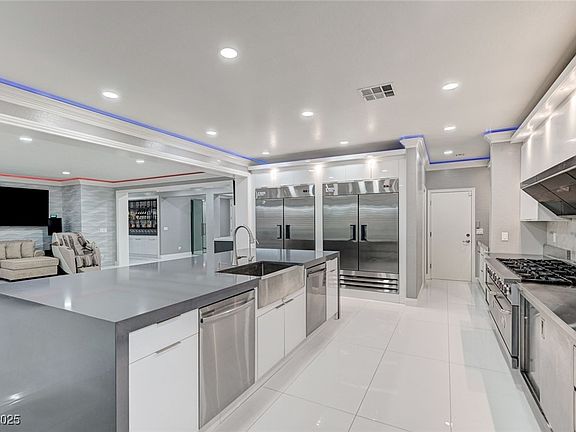 Over $200,000 in upgrades. This sleek SEMI-CUSTOM SINGLE STORY residence, boasts over 4,000sqft of luxury in a private gated community. Designed for entertaining, the open floor plan features 5 bedrooms and 4 full bathrooms; a massive and modern layout that is both elegant and functional. The true Next Gen suite doubles as separate guest quarters with its own entrance, living room, kitchenette, and laundry—ideal for multi-generational living or rental potential. At the heart of the home is a chef’s kitchen with professional-grade fridge and freezer, a large gas range, oversized island, and custom cabinetry. Seamlessly connected to expansive dining and living areas, it’s perfect for cooking, creating, or hosting. Additional highlights include a den, flex office/gym, custom bar with display shelving, modern finishes, and LED accent lighting throughout. Centrally located near shopping, dining & entertainment; this home has it all.