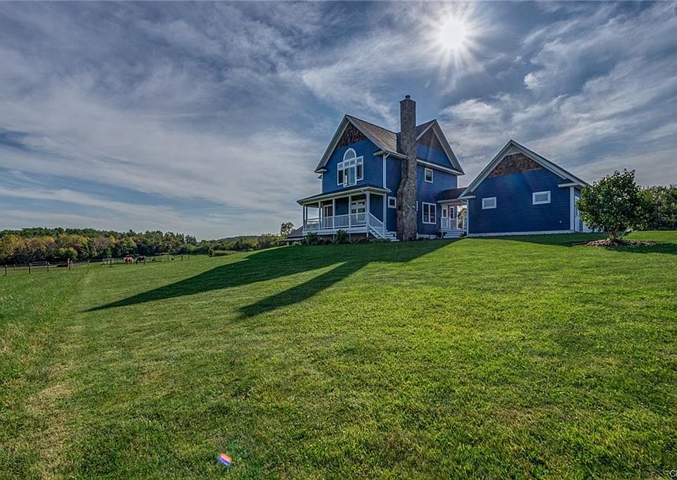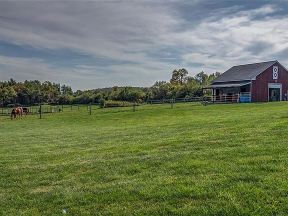 Regally set atop a hill on over 13 acres, this home is a must see! Meticulously designed w/ attention to detail this home boasts 3 BR's & 3 full baths which includes a Lg master with 2 WI closets, ensuite bath w/ soaking tub & spa like shower. Large windows offer a lovely view of the surrounding countryside. The 1st FL has a custom kitchen w/ Quarter Sawn Oak cabinets & a Boos Block countertop, elegant DR & LR w/ wood burning FP, full bath & a great flow for entertaining. Multi-zone in floor radiant heat is clean & efficient. Stay cool w/ high velocity mini-duct C/A! Outdoors enjoy the peace & tranquility of the back deck & take a dip in the AG saltwater pool! This property includes a horse barn w/ 2nd level great for storing hay or finishing off, heated tack room, pond & SO MUCH MORE!