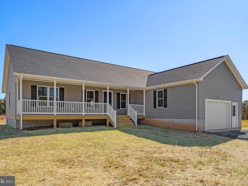 Gorgeous New Construction Just Completed! No need to wait months and months for a new home! Don't miss this lovely 3 bedroom 2 bath rambler on 4+ acres. Home boasts over 1550 finished sq/ft, open floor plan with vaulted ceiling, designer kitchen with island and stainless steel appliance package, luxury vinyl plank floors throughout the entire space, large bedrooms, primary suite with walk-in closet, granite in kitchen and bathrooms, oversized covered country front porch, 2-car attached garage and much more! Country living made easy with the availability to high speed internet via FiberLync!