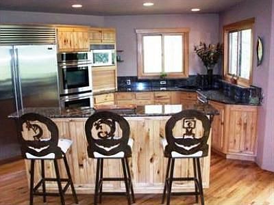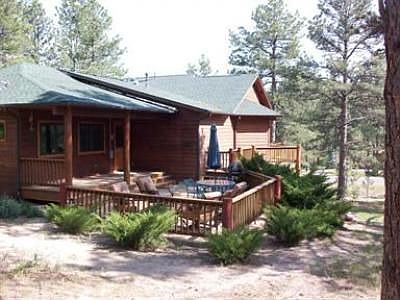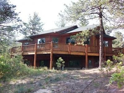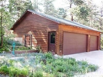 Custom log and Cedar ranch style home. Mountain contemporary with Southwest style interior. 4 bedrooms & 4 bath plus oversized 3 car garage. Fully remodeled gourmet kitchen with sub zero refrigerator, Jennaire dishwasher and double oven. All stainless steel appliances - granite counters. Lots of hardwood and beautiful tile floors. Log accents both inside and out, 2 pellet stoves. Huge wrap around deck. Lots of trees for privacy. Just one mile to Bear Dance golf course (homes of the Colorado PGA) New 50 year roof - warranty transferable. Newer water (65 Gal)