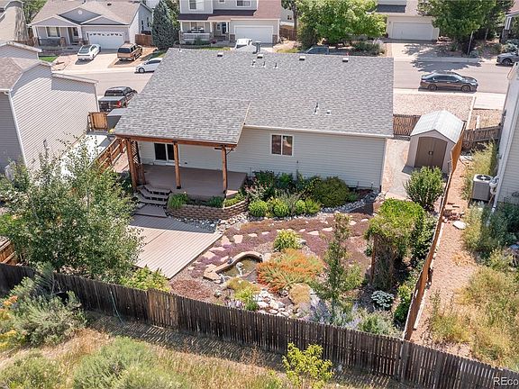 Welcome to your new home in the beautiful Roxborough community of Littleton! This charming and updated residence features a covered front porch that invites you into the main level with an open floor plan. The spacious living room boasts a cozy gas fireplace and flows seamlessly into the well-appointed kitchen. The adjacent dining room, with sliding glass doors, opens to an enlarged rear deck, perfect for indoor-outdoor living and entertaining.