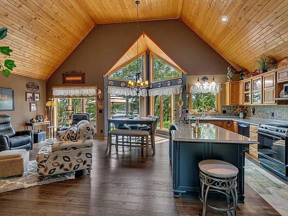 Nestled on .86 acres of mature trees and vibrant flower gardens, this impeccably maintained Spring Lake home offers 174 feet of private shoreline and effortless one-level living. You'll be greeted by a wall of lake-view windows framing your great room, formal living area, and dining room, perfect for entertaining or peaceful mornings with coffee in hand. The spacious kitchen overlooks sparkling waters and steps out to a large paver patio, where lakeside sunsets become your evening ritual. Retreat to the main-level primary suite, complete with generous closet space and en-suite bath, while a second bedroom on this floor is ideal for guests or a home office. Downstairs, an epoxy-coated basement welcomes family movie nights in the oversized recreation room, two additional bedrooms and a third full bath. Storage is never an issue with a heated, insulated 2-plus car garage, detached one-car garage and garden shed. A sturdy steel stairway leads you straight to the water for boating, fishing or lakeside lounging. Enjoy maintenance free seamless steel siding, along with tons of mature perennial gardens throughout. Experience unique design, stunning views and turnkey lake living-all in one exceptional property. Schedule your private tour today and step into your dream retreat!