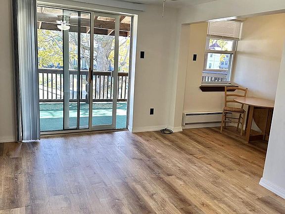 Welcome to this charming second-floor, one-bedroom apartment! You'll enter into a spacious living room featuring gleaming new laminate hardwood floors and a ceiling fan. A sliding door leads to a large balcony, allowing plenty of natural light to fill the space. The kitchen offers new laminate flooring and a cozy eat-in area. The bedroom features brand-new wall-to-wall carpeting and a ceiling fan for added comfort. The full bathroom is very well maintained and finished with elegant ceramic tile flooring. The apartment is freshly painted. Conveniently located near the 69th Street Terminal, public transportation, and shopping. Tenant is responsible for all utilities, including electricity and water. No pets and no smoking permitted. to move in required first, last and security.