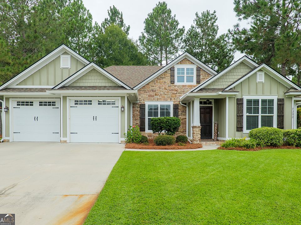 Welcome home to 7298 Wind Chase Drive. This beautiful 4-bedroom, 2.5-bathroom home in Creekside West offers a comfortable and stylish living experience. Located in the desirable Hahira School District. The home features a spacious interior with beautiful hardwood floors, coffered ceilings, and ample natural light. The gourmet kitchen is a chef's dream, equipped with stainless steel appliances, granite countertops, a large island, and plenty of cabinet space. The luxurious owner's suite provides a peaceful retreat, complete with a double vanity, a glass-enclosed shower, a soaking tub, and a walk-in closet. Spend quality time with family and friends on the screened porch or in the fenced backyard. The community pool, playground, and ponds offer additional recreational opportunities. Additionally, the home is equipped with a generator hook up for peace of mind during storm season. Don't miss this opportunity to own a beautiful home in sought after Hahira, GA!
