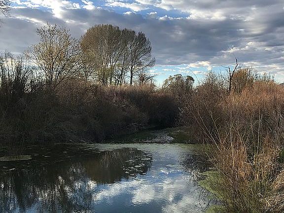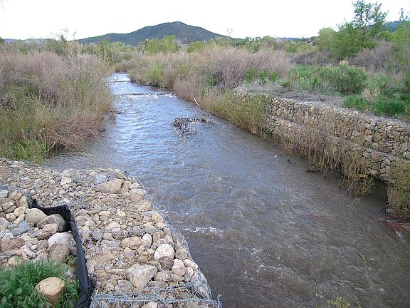 9.25 acres Tucked into the Ranchos Valley is a treasure to be found. Step onto an oasis of fruit trees, verdant fields, and the meeting of two flowing rivers, the Rio Chiquito and the Little Rio Grande. You have municipal water in addition to a 200' well, plus irrigation rights. Oversee this lovely paradise from the bright and airy, Territorial home with a wrap around, covered, portal. This spacious home offers Pumice-Crete construction, heated wide-plank pine floors, high end appliances, kiva fireplace, Pella windows, and tall ceilings with exposed, wooden beams. The upstairs is a dedicated Master Suite loft with a full bath, and a private Trex deck. Across the flagstone patio, is the Guest Quarters with a full bath and heated floors. Attached is the 1,200 sq. ft. heated, studio/workshop/3 car garage with recessed lighting, reinforced walls, full utilities and 10' ceilings. View the entire ranch from a wall of windows. Bonuses include: an underground root cellar, a barn with 2 horse stables, 2 flagstone patios one with a built in fire pit. Wonderfully unique in many ways.