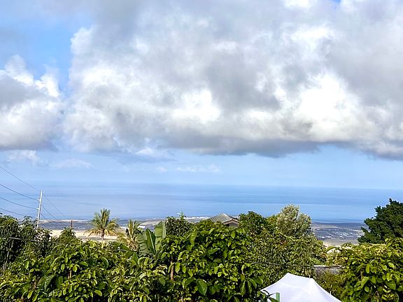 Located at a cool ~1540 ft. elevation above the airport, this clean 3/2 single level, hillside home has ocean views and cool breezes. This 17,000+ sq. ft. lot features plenty of extra space in both the front and back yards with yet another separate grassy area, with a covered lanai, perfect for kids or animals. The large front yard can easily accommodate 10+ cars and the extra large backyard can be accessed via a lower driveway or through the existing gate system and can be used for gardens, extra parking, or even to build another structure. Pineapples, figs, papayas, lilikoi, mint, ginger, bananas, dragon fruit, and avocados are on property.<br><br>Included is a leased Sunrun PV system and backup battery, which can transferred to new owners upon completion of Sunrun's assumption guidelines.