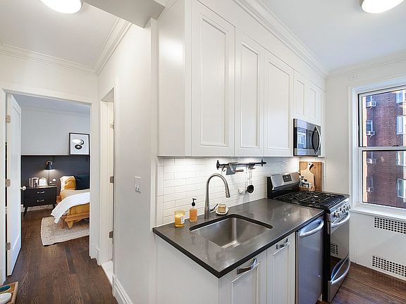 This chic, move-in ready 2-bedroom co-op apartment combines classic charm with modern finishes in the heart of a vibrant neighborhood. Enter into a sunlit living room with beautiful southwest exposure, perfect for relaxing or entertaining. The space is enhanced by oak hardwood floors throughout and the soothing sounds of the building's garden pond create a peaceful vibe right outside your window.