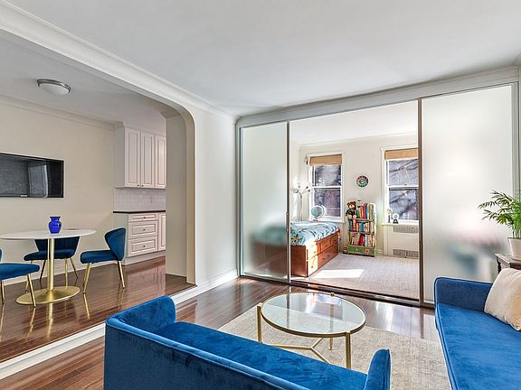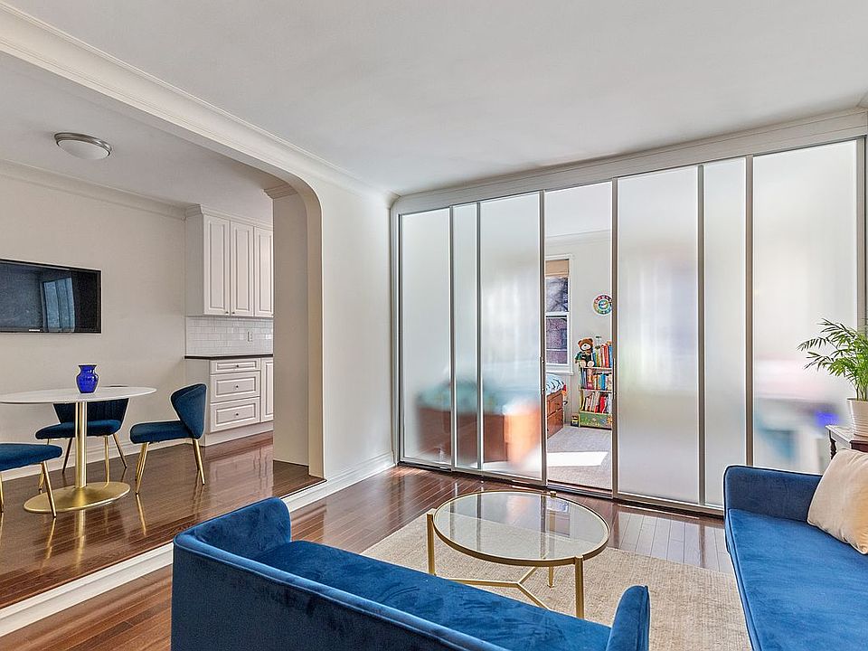 RARELY AVAILABLE! Fully renovated Jr4 954 Fabulous Square Feet. Huge living room with sleek custom glass sliding doors that create adaptable space. Make is a guest room, home office, den - you decide! Just unpack and move in to Washington Plaza's largest one bedroom residence. Custom renovated windowed eat-in-kitchen with well thought out layout for all of your cooking and family needs including touchless faucet. Gracious foyer and dining area affords the space you are craving. Stunning hardwood floors, 5 fabulous closets including walk-in. Oversized primary bedroom with plenty of room to lounge, work or study. All new windowed bath featuring subway tiles, soaking tub and vanity with great storage space. Gated community with attended gate house leads you in to one of Jackson Heights famous gardens. Bike room, private storage, new laundry and state of the art Fitness Center. All its missing is you! Priced to sell!