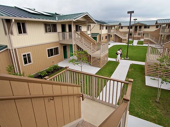 Na Kahua Hale O Ulu Wini is a family-focused affordable housing community located on over 8 acres in Kailua-Kona. The property includes 96 two-bedroom rental units across 24 two-story walk-up buildings, with uncovered parking available for residents. Each unit comes equipped with an electric range, rangehood, refrigerator, and solar water heater.