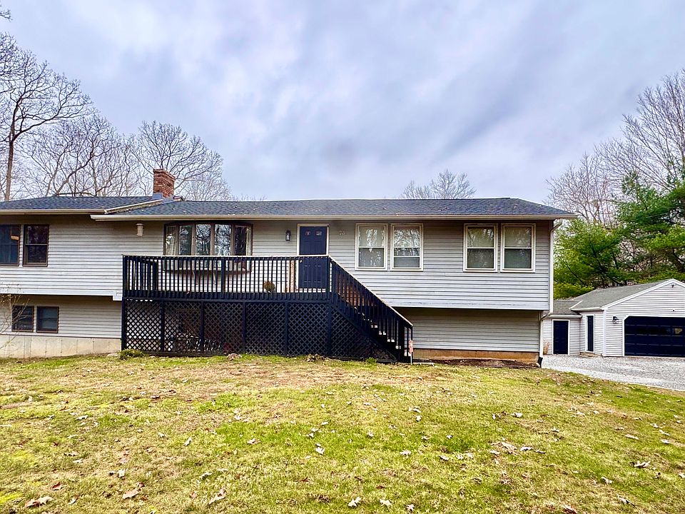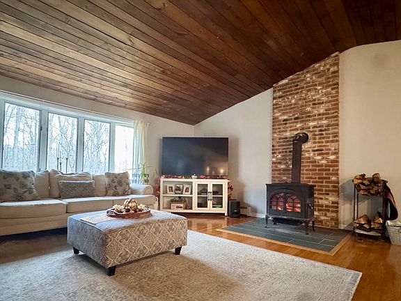 Tucked back on 3.17 private acres, this home offers the perfect blend of quiet country living with quick, easy access into both Clinton and Madison. This spacious raised ranch lives large, with hardwood floors throughout and an inviting open floor plan that centers around a beautiful kitchen featuring GE Profile appliances, granite countertops, a great center island, and vaulted ceilings that flow seamlessly into the warm, sun-filled living room. The woodstove keeps the home cozy all winter and helps keep heating costs low. A big dining room provides plenty of room to host the holidays, and the generously sized primary bedroom gives you the space you've been looking for. The upstairs bath is nicely finished with a pedestal sink and classic details. The lower level expands your living options with an additional bedroom, a second woodstove, and a possible in-law setup with its own walk-out entry and covered porch-ideal for extended family, guests, or flexible work-from-home space. A new roof was installed this year, and the updated water treatment system ensures crystal-clear drinking water. Outside, enjoy a beautiful lawn, fire-pit area, and a two-car garage, all surrounded by nature and privacy. This move-in ready home is available now-settle in and make it yours before the ball drops in 2026.