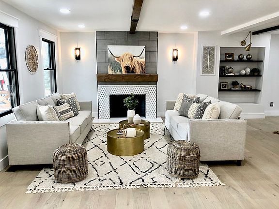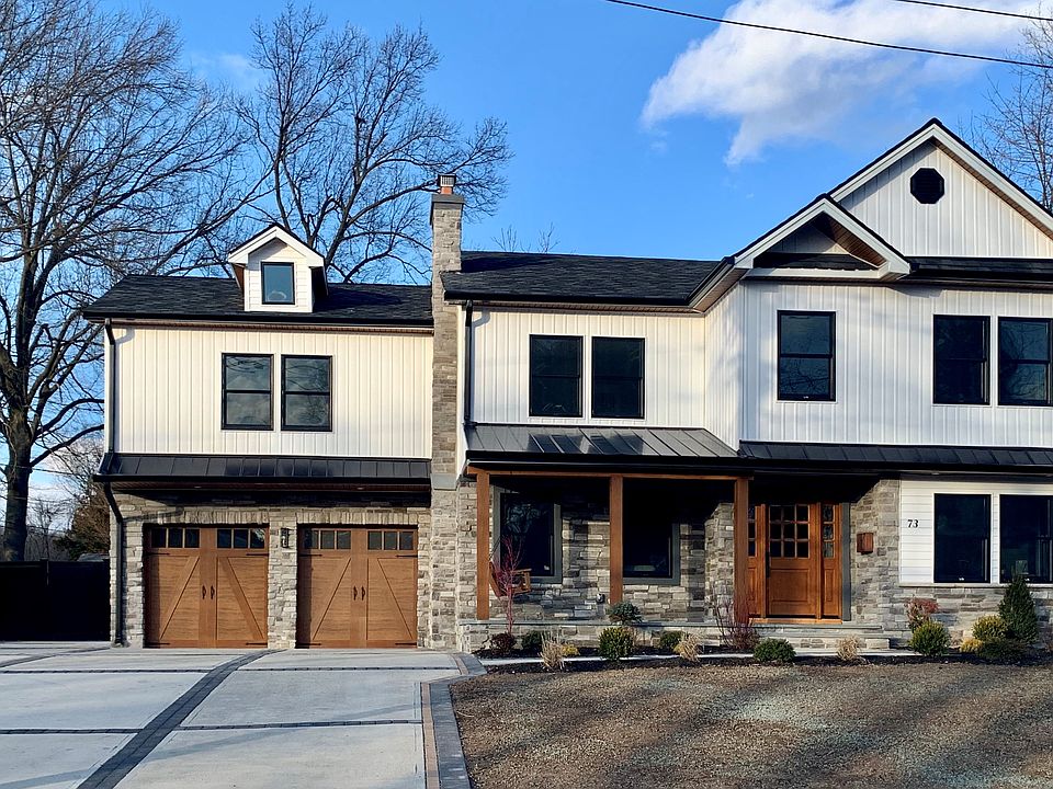 Designer spared no expense! Newly built spectacular 5 BR 5 BA Rustic Farmhouse home offers amazing amenities. Open-concept home has 2 Master Suites, Living Room & Family Room w/ 2 fireplaces, Office, Wine Room, 2nd Floor Laundry, and Finished Basement. Stunning kitchen comprises custom cabinets, high end black matte appliances, 2 islands, 2 sinks, under cabinet refrigeration, and more - all perfect for entertaining. Bring the outdoors inside with a 6-foot window and extended concrete-like countertops that opens the kitchen up to the backyard! Throw that perfect gathering out back with a massive built-in natural gas grill and stone patio with pergola. Spa-like bathrooms, custom WIC in each Bedroom, and fine wood accents round off this amazing home. Close to shopping, highways, restaurants, and steps to NYC bus. – A Rustic Appeal, LLC project.