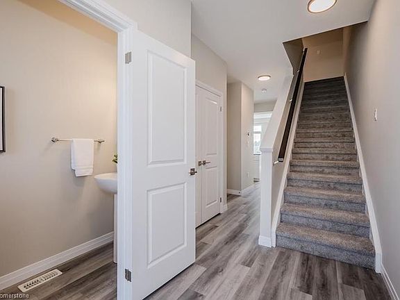 Imagine living in a serene town, just minutes from the city and the 401. Welcome to Windsong! Nestled in the charming village of Ayr, this beautiful condo town provides all the modern conveniences families need. Don't be fooled by the small town setting this home is packed with value. Inside, you'll find stunning features like 9' ceilings on the main floor, stone countertops throughout, kitchen islands, luxury vinyl flooring, ceramic tiles, walk-in closets, air conditioning, and a 6-piece appliance package, just to name a few. Plus, this brand-new home is ready for you to move in immediately and comes with NO CONDO FEES for the first 2 YEARS and a $2500 CREDIT towards Closing Costs!! Don't miss out - reserve your home TODAY! Please note that photos are of Unit 79, this unit has the same finishes but the layout is reversed.