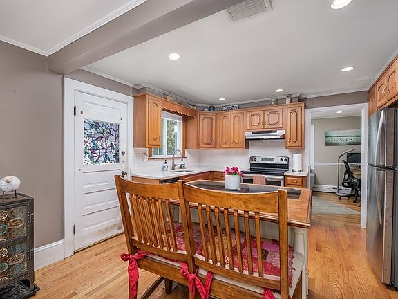 Custom Built Cape in much desired Burbank School district. This sun filled 3 bedroom home features living room with fireplace, dining room, eat-in-kitchen, 2 full baths, three season enclosed porch and finished recreation room in basement. Central air and a newer heating system will keep you comfy year round. Beautifully landscaped front and fenced-in back yard with built-in sprinkler system. Walk to all schools, Grove Street playground and public transportation.