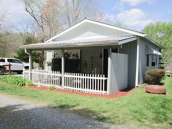 Looking for that affordable get away in the mountains?in a 55+ park? Here it is!!! Situated in a perfectly manicured park, this adorable 2bd 1 1/2 bath is perfect for seasonal or year round living. Original unit is a travel trailer with a large addition built around, all under one 2018 metal roof. Sit on the front porch in the morning with coffee and just enjoy the views. The unit is located on a dead end street with only 2 others beyond, no one across the street and no one to the left. In the spacious living room there is a wonderful gas log heater that nearly heats the whole house, sliding glass doors leading to the front, covered, screened porch and a side entry. Cozy kitchen with cute dinette 2nd bedroom with bath just beyond. Large master, big enough for a king size bed with half bath. Amazing covered patio area as you pull up, plenty of parking and a wonderful storage shed with power and attic storage. Underneath the home was completely encapsulated last year with a dehumidifier system. Included in HOA fees are water, sewer, lawn maintenance and road maintenance Come enjoy the mountains without breaking the bank.