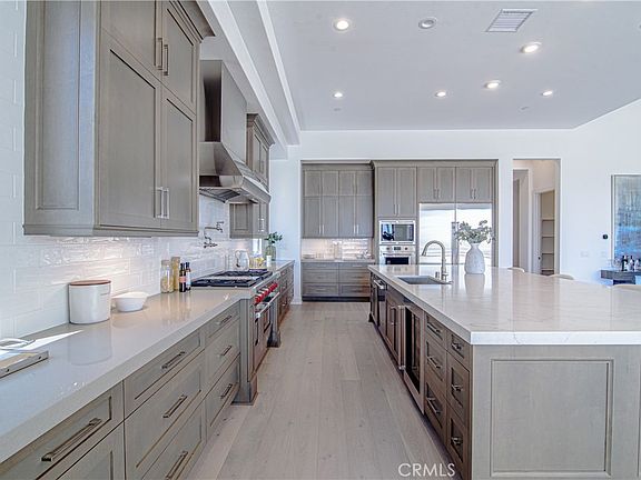This stunning one-level home, located on a cul-de-sac within the exclusive gates of Residences of Rolling Hills Country Club, is 4525 square feet of modern elegance. Built by award-winning home builders Toll Brothers, this home was thoughtfully designed to effortlessly combine everyday living with impeccable craftsmanship. From the moment you step inside, you’ll be greeted by soaring ceilings and an airy, open-concept layout that seamlessly flows from the common spaces to each of the four bedrooms (including guest suite with kitchenette). Owner upgrades and special touches abound, including hardwood floors and floor-to-ceiling sliding glass doors. The gourmet kitchen is worthy of the most avid chefs, thanks to high-end appliances, soft-close cabinets, and two different-but-complementary countertops. The must-see primary suite has a luxurious bath with two single-sink vanities, separate shower and tub, and large walk-in closet. The primary bedroom has direct backyard access, perfect for relaxing after a long day while overlooking the sparkling city lights. The expansive backyard is an entertainer’s dream, featuring a custom-built outdoor kitchen, wall-mounted fireplace, and a raised deck (with spiral staircase) to take in sweeping views of the city and the David McLay Kidd-designed championship golf course.